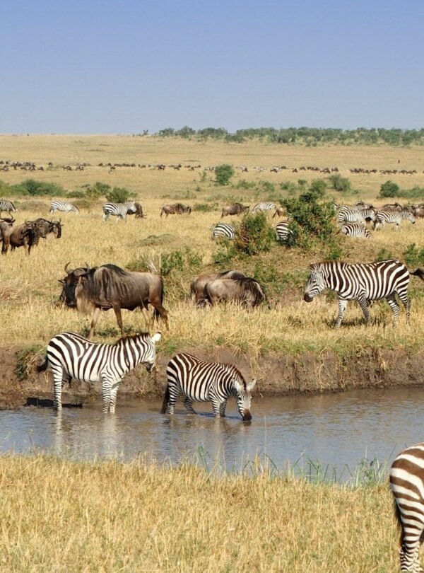 In Amboseli, witness vast herds of elephants roaming freely against the dramatic, snow-capped backdrop of Mount Kilimanjaro. The adventure continues with a scenic flight to the golden savannahs of the Masai Mara, where zebras, lions, elephants, and countless other species thrive in one of Africa’s richest ecosystems.